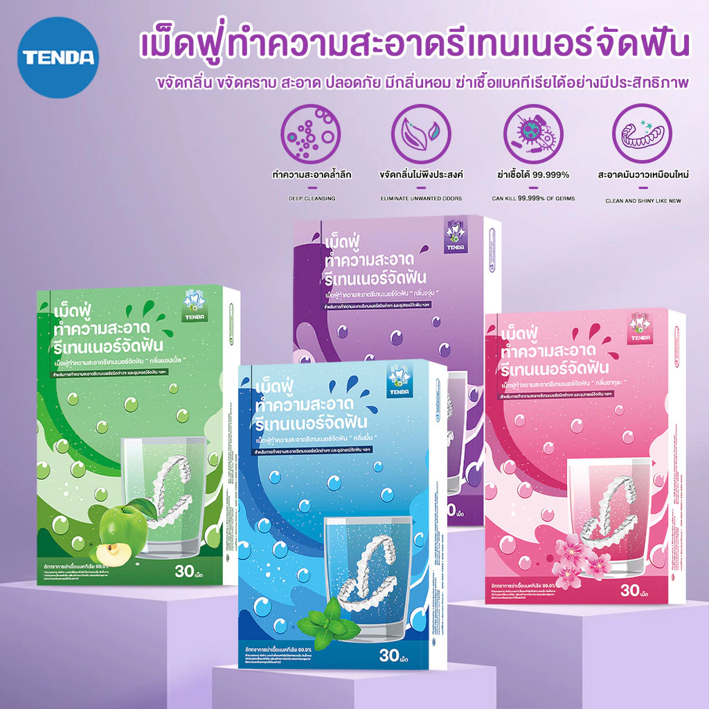 TENDA ของแท้30 ชิ้น เม็ดฟู่ล้างรีเทนเนอร์ เม็ดฟู่แช่ฟันปลอม ทำความสะอาดคราบหินปูน ช่วยให้กลิ่นหอมสดชื่น